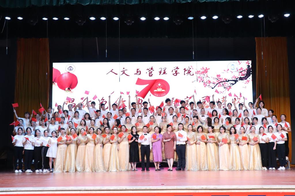 活动在人文与管理学院全体学生参与的《我和我的祖国》快闪视频及合唱中开场,同学们意气风发、精神昂扬,歌声中蕴含了对祖国最深情的告白。由我院师生代表带来的《我爱你,我的祖国》朗诵,以慷慨激昂的语调演绎出对祖国的礼赞。随后,学生党支部、2019级学生团支部献上了大气磅礴、激情澎湃的红色经典合唱,充分展现了我院学子的风采。晚会的最后,教师党支部一首《不忘初心》将此次活动推向高潮,大家在悠扬的歌声中,把对祖国母亲的深深情谊唱进了歌声里。