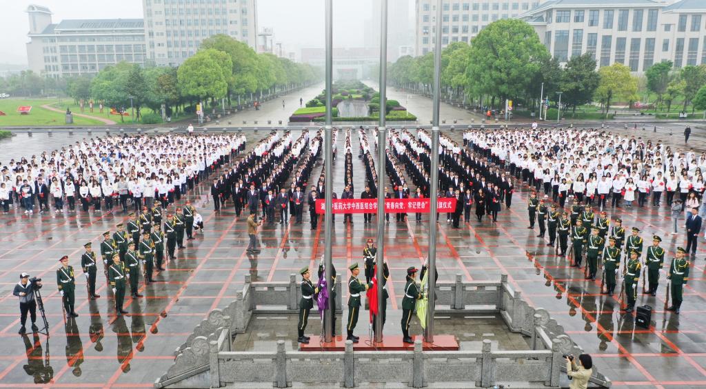 为积极响应省委教育工委开展的“青春向党 湖南省万名大学生集体入党宣誓”活动。4月27日上午,我校“青春向党,牢记使命”集体宣誓暨“国旗下的讲话”活动在含浦校区举行。中西医结合学院全体师生、组织人事部、宣传统战部、学生工作部、校团委等职能部门负责人共计1200余人参加活动。