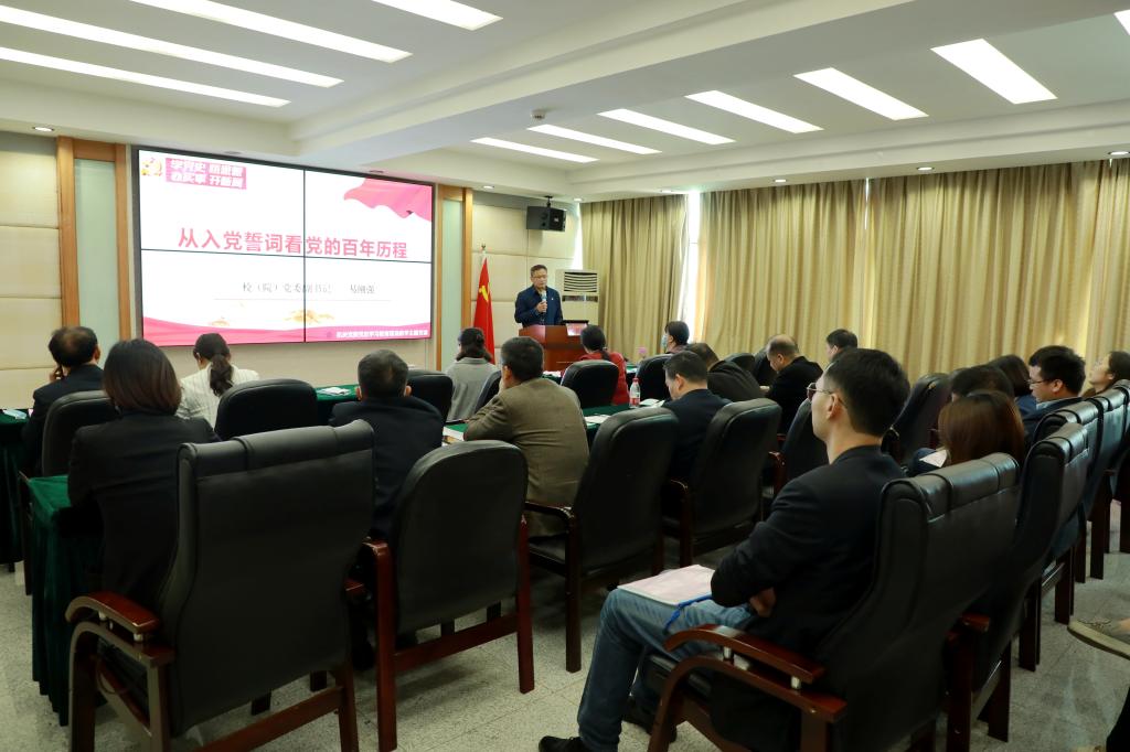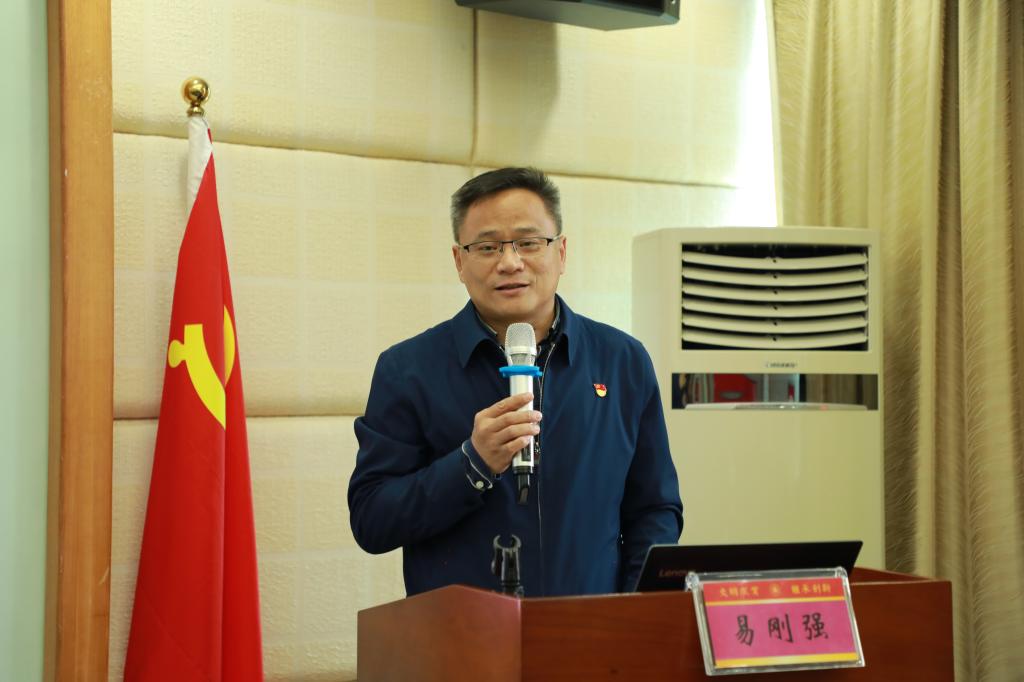 在蔡和森纪念馆会议室,易刚强作了题为《从入党誓词看党的百年历程》精彩党课,从入党誓词的由来到演变过程进行了讲述,阐述了入党誓词的变化与党的发展历程的关系,