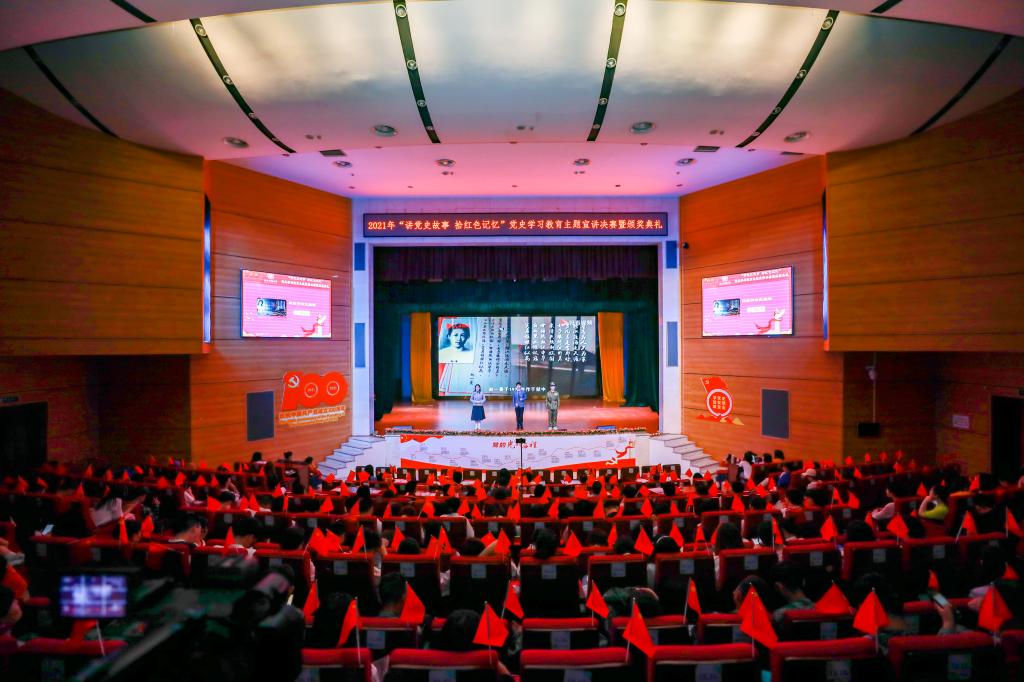 活动现场,同学们手擎小红旗,气氛庄严、热烈。选手们紧紧围绕党史,以丰富鲜活的史实、生动鲜活的语言、激扬振奋的语调,以小见大,多层次、多角度、多形式讲述共产党的光荣历史和革命先烈、先进人物的先进事迹与崇高精神。经过两个小时的激励角逐,最终湘杏学院辅导员黄俊超、人文与管理学院学生彭予全及湘杏学院学生常静怡获得一等奖,另评选出二等奖5个,三等奖8个及最佳人气奖2个。
