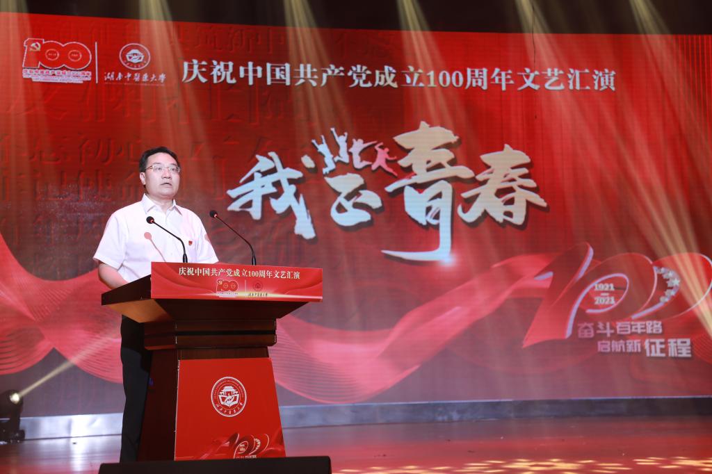 校(院)党委书记秦裕辉发表讲话。他指出,举办本次文艺汇演,既是校(院)喜迎党的百年华诞的深情讴歌,也是开展党史学习教育的热情绽放;既是一场展示才艺、激扬青春的精彩演出,更是一堂鼓舞人心、凝聚力量的时代回响。校(院)上下要从党史学习教育中铸牢信仰、汲取力量,以更加饱满的热情,更加高昂的斗志,为建设行业一流、国际知名、中医药特色鲜明的高水平教学研究型大学和科技创新型研究院不懈奋斗。