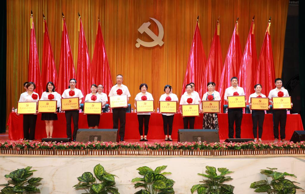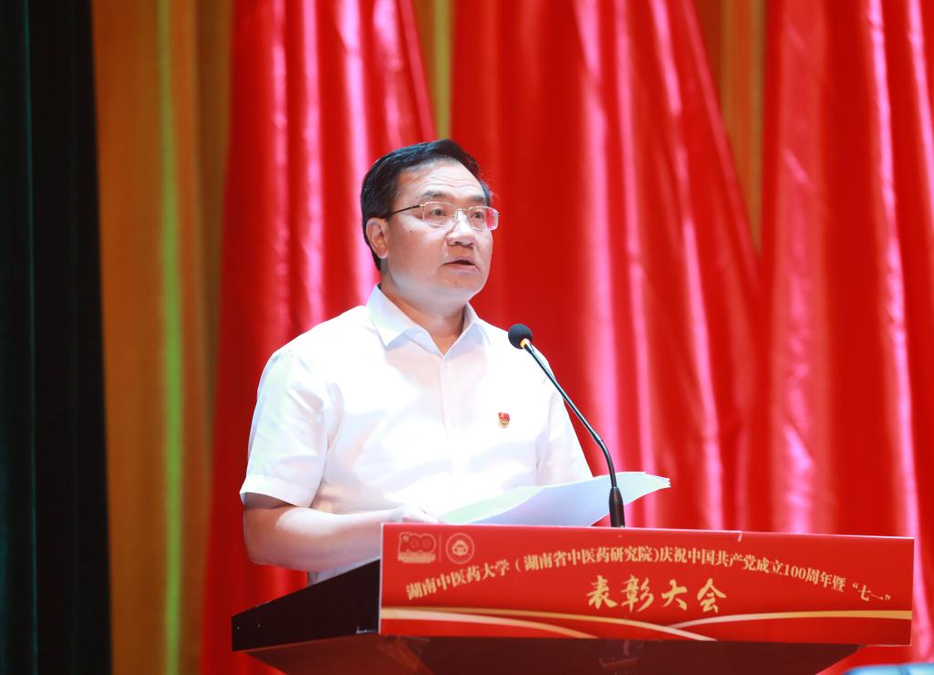 易刚强宣读《关于全省及省直行业系统“两优一先”评选表彰结果的通报》和《关于表彰优秀共产党员、优秀党务工作者和先进基层党组织的决定》。3名优秀党务工作者、2名优秀共产党员、2个先进基层党组织、3名优秀大学生党员受到全省及省直行业系统表彰;143名优秀教职工共产党员、120名优秀学生共产党员、38名优秀党务工作者及37个先进基层党组织受到校(院)党委表彰。与会校(院)领导为受表彰的单位和个人代表颁奖。